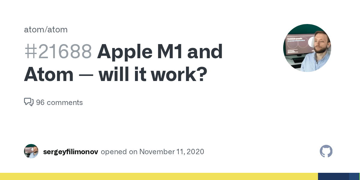 The app works with rosetta 2.. Atom helps you write code faster with a smart and flexible autocomplete. Atom works fine on m1 (tested on big sur & monterey) with rosetta 2. Is apple silicon ready for atom?, rosetta 2 support for atom, atom on m1 macbook air, atom on m1 macbook pro, atom on m1 mac mini, atom on m1 imac. Programming , editor , ide , developer. By downloading, you agree to the terms and conditions. Macos for macos 10.10 or later. 11.11.2020 · if your atom doesn't run on m1, right click the app in finder, open it and when prompted to install rosetta 2, install it. 19.10.2021 · links der bisherige m1 von 2020 mit einer chipfläche von rund 120 mm².. 19.10.2021 · links der bisherige m1 von 2020 mit einer chipfläche von rund 120 mm².